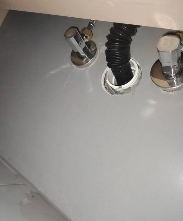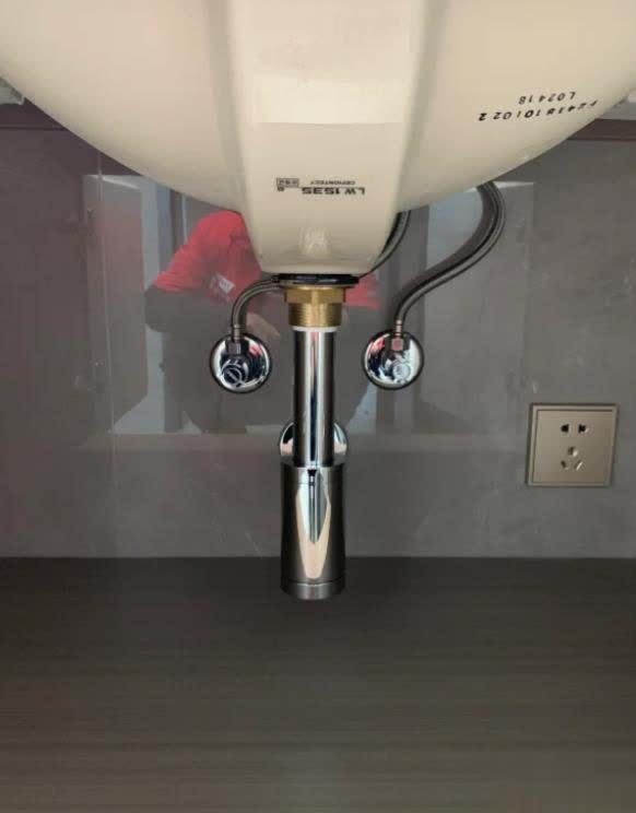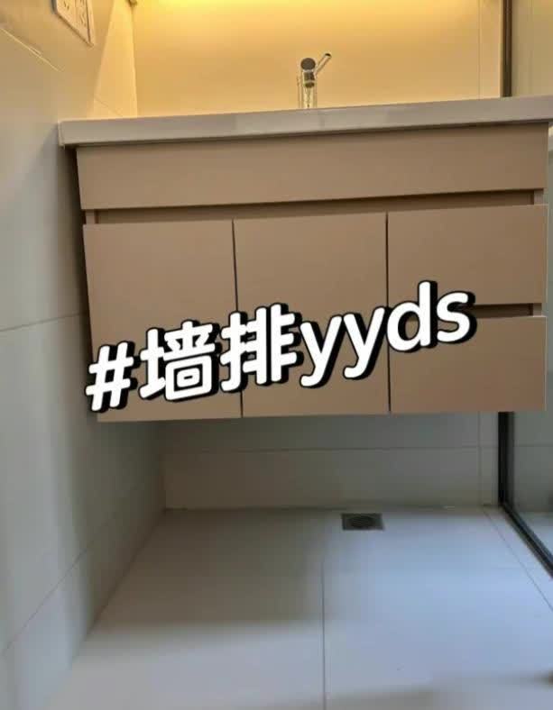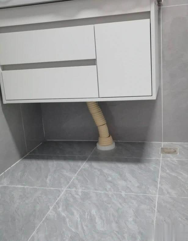 洗手盆的下水一定要改成墙排,来我给你对比一下,这个是没有改的直排式下水,满满的卫生死角,还不好打理。