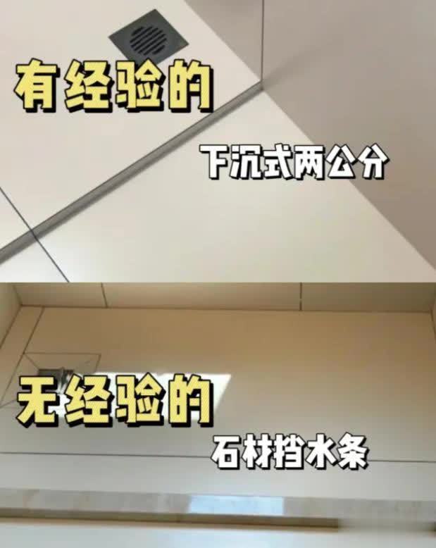 正确做法:把淋浴房做成下沉式的,整个淋浴房下沉两到三公分,起到挡水作用,洗澡水就不会往外跑。