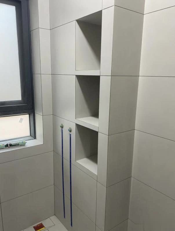 正确做法:壁龛深度最好是跟包管的厚度一致,根据贴砖总高度和瓷砖尺寸计算出来预留几个?壁龛的每一个底面瓷砖一定要做好坡度中鼎策略,防止里面积水。排好尺寸,让壁龛的每一条横缝、竖缝都与其他墙面的地砖对齐。