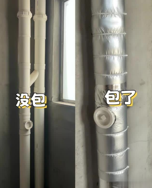 正确做法:首先把检修口拧下来,查看胶圈是否在里面,然后拧紧,确保后期不漏水。包之前,要先把管道擦干净,用2cm厚的带自粘胶的隔音棉,施工起来会很方便。